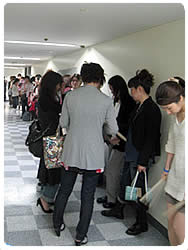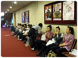 【左】楽屋裏で順番待ち