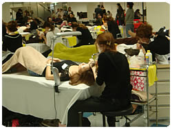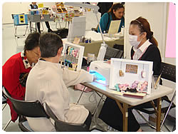 大きな会場にジェルネイルコンテストをしているコーナー、