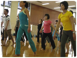 ■■■ 中尾和子*2010年05月の活動報告(1) フィットネスセッション特集 ■■■第24回フィットネスセッション レポート (2010/05/03〜05) 写真と構成: studio-dune スポーツとフィットネスのEXPO、 FITNESS SESSION、 コア・ストレッチ&ダンス〜美しさを存分に引き出すために〜 (2010/05/04) 「体を動かすこと」の感覚と意識に注目した連続講座「深呼吸フィットネス」にて