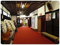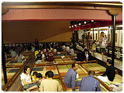 芝居小屋の情感たっぷり、花道を歩いて桟敷に向かいます