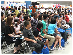 このようなイベントでの講演は初めてです。一万五千人の入場者を飲み込んで、会場は恐ろしさを感じるくらいの人の渦と喧騒でした。ここで、講演?どないしょう?