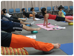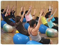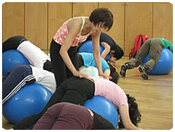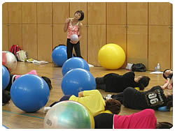 ボールエクササイズの基本を学び体感することがメインである今日のセミナー。
