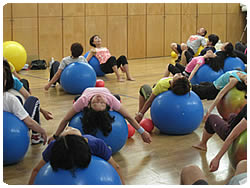 セミナー終了後、思いの存分、ボールの上をすべって転がって遊びました。