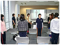 「美しい姿勢と呼吸運動」をスライドで紹介しました。