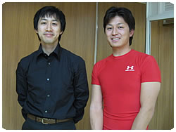 治療家のおふたりご対面(治療家でありながらJSAボールエクササイズ指導者にチャレンジした前田直人さん・右 左は澤祐平先生)