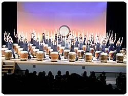 発表会では生徒が主役なので、講師は地打ちという伴奏をしたり、太鼓の出し入れや設定など、裏方に徹します。しかし、今回は講師も真剣にパフォーマンスを繰り広げます。