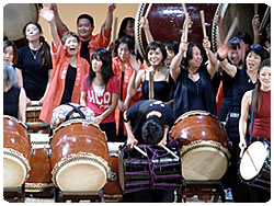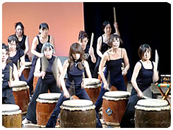 私は和太鼓の生徒として参加しました。太鼓ビクスとは違って演奏は非常に緊張します。あこがれの講師の方たちと同じ舞台に立つだけで、気持ちは舞い上がり、夢見心地でした。