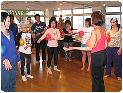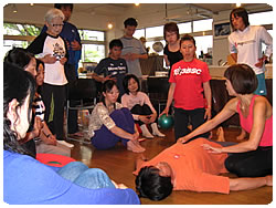 ■■■ 中尾和子*2011年4月の活動報告 ■■■被災地に向けたJSAボールエクササイズ講習会(2011/04/29 金・祝) 会場:ミウラドルフィンズBC(ベースキャンプ)http://www.snowdolphins.com/ 緊張を取り除いて心を休めるには、身体からアプローチする運動が非常に効果的です。