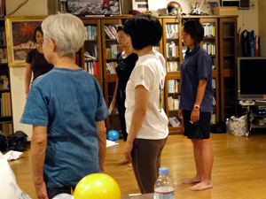 参加者の方たちは、腰が痛い、肩が凝ってしょうがない、いつも緊張して身体に力が入ってしまう、など、いろいろな痛みや辛さをお持ちでしたが、JSAボールエクササイズで身体を緩め方を体感できた、骨や関節の話が面白かった!とおっしゃっていました。