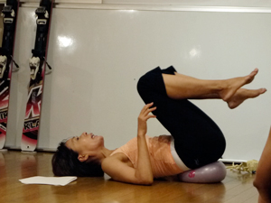 JSAボールエクササイズの実践では、まずはボールに身体を委ねて「力を抜くこと」から始めました。