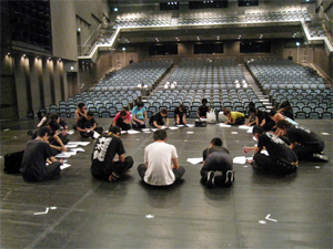 舞台上でスタッフ・講師陣の打ち合わせスタート