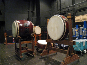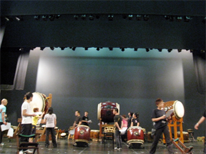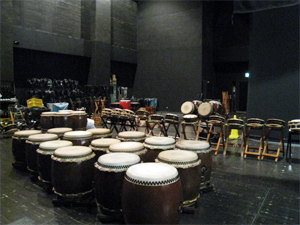 舞台の袖では太鼓もスタンバイ