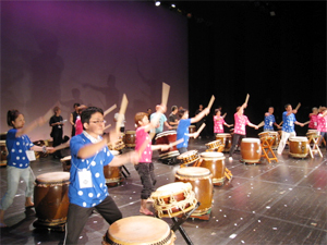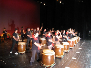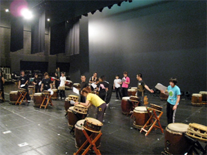 このホールはオーケストラの演奏やオペラが上演されるだけあって、音響設備がすばらしい。太鼓の響きが美しくて、うまくなったような気になります。