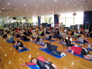 スタジオいっぱいにマットが敷き詰められて、100名近い参加でした。パワフルな人たちだからこそ、力を抜く集中力もすごい!JSA押圧プログラムで、じっくり自分と向き合い、ゆったりとした濃密な時間を楽しまれました。
