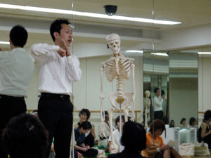 はじめに中尾先生から「ダブルボールの意味」と「なぜダブルボールなのか」のレクチャー。つづいて、JSA手技療法協会選任講師の澤先生から、あらためてJSAとは何か、関節包内運動とは、構成運動(凹凸の法則)とは、の説明がありました。