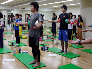 6時間があっという間に過ぎてしまったワークショップ。最後は首と仙骨にボールを当てて、明かりを消してリラックス。中尾先生のキューイングで寝息が聞こえてきそうな静けさのなか、すべてのプログラムが終了しました。