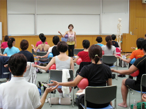 JSAシニアはイスに座ったままでほとんどのJSAエクササイズをこなしていきます。いつでも手軽にできるだけではなく、なぜ必要なエクササイズなのか、どんな効果があるのかをしっかり身体でも確認し、体感していきました。