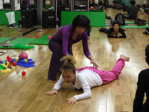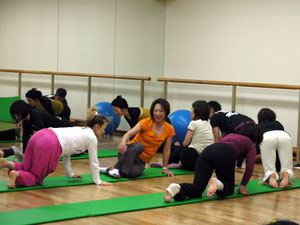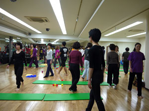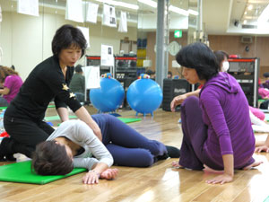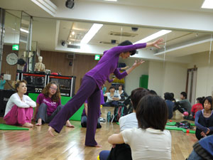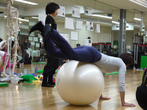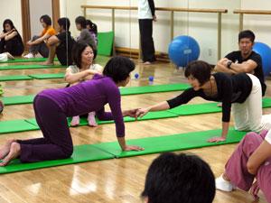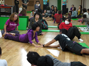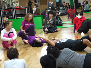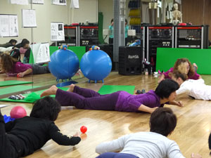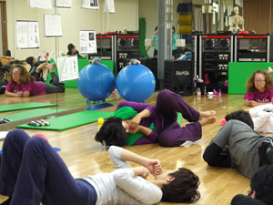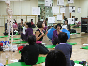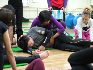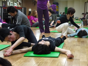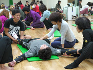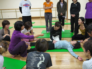 身体運動のレクチャーを受けた後、グループワーク。身体や運動の指導にたずさわっていらっしゃる方たちなので、ひとつひとつの動作が本当に真剣そのものです。