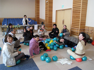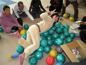 スタッフみんなでギムニクボールの準備、そして、遊びも・・・・・