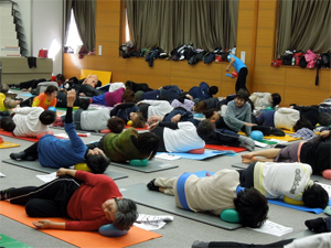 講義は座ったままではなく、頻繁に立ったり、座ったり、姿勢の確認、思いのドリル、ボディマッピングと意外に忙しい?にもかかわらず、皆さんの反応がとても素早い。