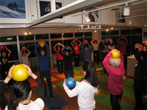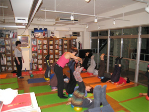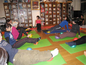 日常動作を意識化して、美しく、楽に動くことを目的にしたボールエクササイズなので、立つ、歩く、座るなど身体感覚を徹底的に研ぎ澄ましていきます。筋肉や骨だけではなく内臓も加えて自分の身体をとらえると、容器に中身が入って充実したような、質的身体感覚が変わります。呼吸運動でも胸郭だけでなく、肺や横隔膜の動く感覚まで分かるようになり、どんどんとおもしろさは増します。