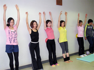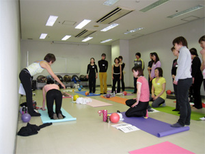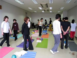 指導スキルを学ぶリーダーズクラスでは「力を抜く」ことができるように導くテクニックや語感を通してのキューイングスキル、やる気にさせるプレゼンテーションスキルまで、考えては言葉にし、動いて見せ、正しいエクササイズに導くことを繰り返します。