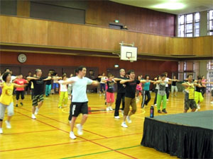 久しぶりの90分長丁場エアロビクス。私はこの前の3時間ワークショップで全く水分補給するのも忘れ、時遅し、谷田君のパートで足がつってしまい、思うように動けなくなった!