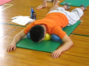 どこにボールをあてていくか、考えては体験し心地よいポイントを見つけます