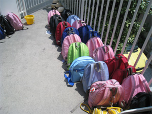 この子たちを外で遊ばせている間に、教室では講演スタート、