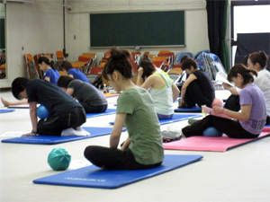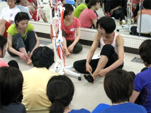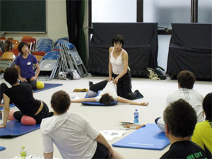 実技ではボールの位置がとても重要、JSAトレーナーの波留 智子さんと江藤 達也さんにも手伝ってもらいました。