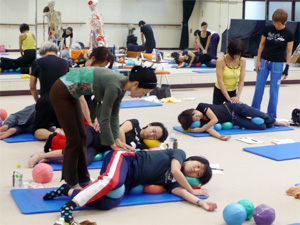 気持ちいいと感じるボールの位置がひとりひとり、わずかずつ異なるので、今さらながら、興味深く、皆で必死で観察しました。自分の身体と対話し、他人の身体や動きを洞察してこそ、感性が高まるのだと思いました。
