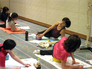 従来の運動は骨運動学に基づいていますが、JSAは関節運動学に基づいたボールエクササイズなので、まず、関節運動学を学ばなくてはなりません。それに、机上だけの知識ではなく、身体感覚で理解し、身体に覚え込ませていくのですから大変です。10か所の主要関節のそれぞれにいくつかのポジションがあるので、実技だけでも膨大です。知識においても実技においても、たった6時間では時間が足りないのですが、日々の練習の積み重ねでしか達成できないことなので、この養成コースはエッセンスを集中して学びます。