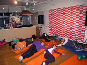 リピーターの皆さんの力の抜け方もポジションの移行も非常にスムーズになって来ました。ですから、徐々にレベルが上がっているのが分かります。少しずつバリエーションが増えてきて、確実に難度・強度が上がっています。このようにレベルが上がると、不思議なことに、はじめて来られた方も自然にこの空気に包まれて上手くできてしまいます。人と人が影響しあうパワーに「すごいなぁ〜!」とあらためて感心しました。