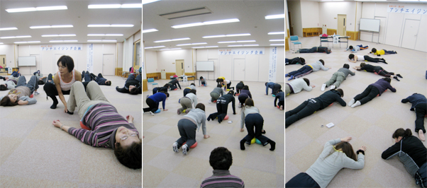 終わったときの皆さんの気持ちよさそうな顔がとても印象的でした。「明日はもっと楽になりますよと言ったら、ほんとうに朝が楽だったと飯山から参加して下さった方たちからも連絡がありました。よかったぁー!