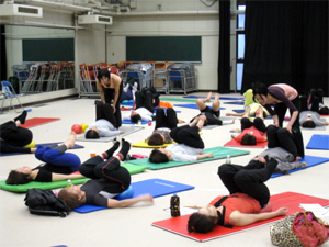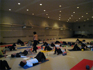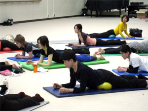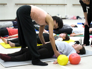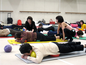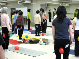 一般の方と指導者が一緒に受講するJSAボールエクササイズレッスンはバランスの良い混合クラスとなりました。福岡大学の柿本先生が指導されている地元シニアの方たちの参加もあり、大変有意義な気づきと学びの時間を過ごすことができました。