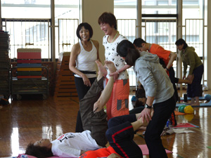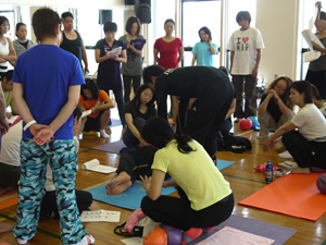 手あてをする人もされる人も、全身を使っての練習でものすごい力仕事だなーと感じました。