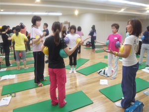 身体感覚を養う多彩なボールエクササイズをどのように使うかがとても重要です。安全で効果的なエクササイズにするには、まず、指導者自身の身体感覚が磨かれなければなりません。誰もが気持ちいいと感じられる動きに導くために、指導者も練習するしかないのです。そのことを理解し、一生懸命に取り組むみなさんを見ていて非常に心強く思いました。ありがとう!