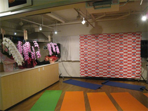 いつも記者会見や取材が行われるフロアでエクササイズをしています。ここも花があふれていました。
