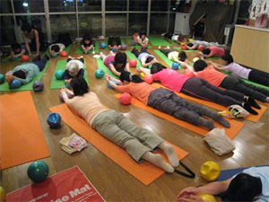 ここミウラドルフィンズBCでの月に一度のJSAボールエクササイズレッスンは、自分の身体を思いやり、行動を起こす人たちでいつも大盛況!