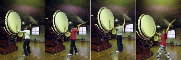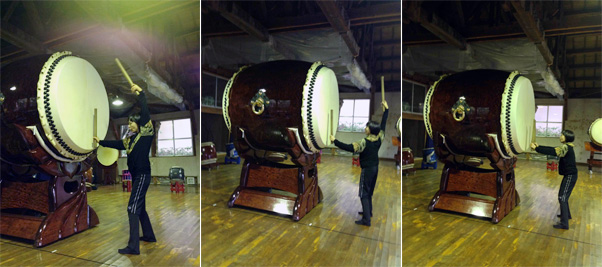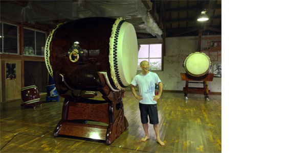 なんと大きい!なんという迫力!前に立っただけで、不二に「クスッ!」と笑われたように感じて、ちょっと足がすくみます。おまけにバチの重いこと!これでないと不二の音は出せないのかとあらためてその凄さに驚きました。