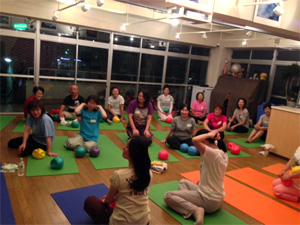 昼と夜の2クラスになったJSAボールエクササイズレッスン、おかげさまで、どちらも定員いっぱいでスタートできました。感謝!!!