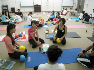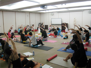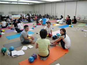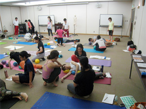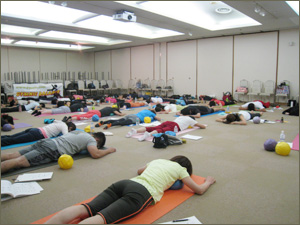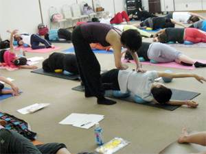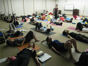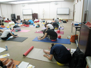 今回はキューイングとプログラミングをさらに深く学ぶフォローアップセミナーですが、参加者はJSA認定インストラクターだけではなく、JSAが初めての方も多く、JSAの心地よさをしっかり体感してもらえるようがんばりました。また、ボールの持つ弾力と転がる特性を生かしたエクササイズやマルチプルボールの体験と考察も行いました。とにかく、活気があふれ続けた6時間はマジすごかったぁ〜!