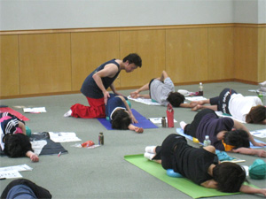 ボールをあてる位置やフォームを3人で直せるので、とても効率よくエクササイズを展開できます。チームワークの大切さと楽しさを存分に味わいながら、一生懸命に動きました。