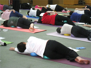 今回は中尾クラブ事務局の西浦正子はじめ、太鼓ビクスの会員の方も数名受講してくださいました。ほかにJSAシニアや専門クラスをきっかけに参加された方も多く、たくさんの馴染みの方たちにうれしくて心が躍りました。