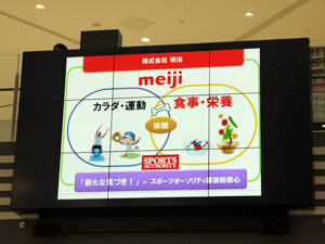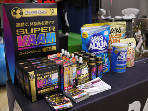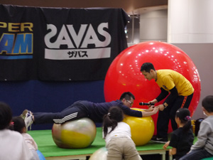 最上階まで吹き抜けになっている1Fのイベントスペースで、株式会社明治のイベントが開催されました。ヴァームやザバスの試飲会と、大きいGボール体験レッスンの様子を取材してきましたので、レポートします!
