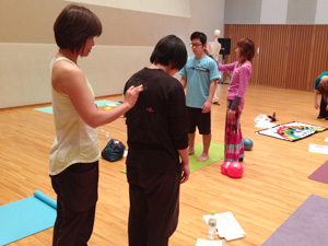 先生にしてもらうとほどけていくように感じるのに、自分が当てる手の力や重さを計りきれないもどかしさ。手を当てる側こそがリラックスして、穏やかな気持ちでいないと、ただ教えられるカタチだけを真似てもダメなのだと思いました。