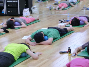 試験のことを考えるとだれでも緊張しますし、いくら勉強しても足りない気持ちになります。そんな中、試験の意義を皆で再確認し、JSA総まとめ的復習をスタート。JSA理論・実技はもちろん、指導スキルまで3時間で網羅します。とにかく凄い集中でした!