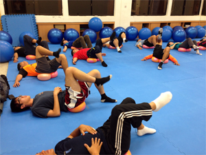 在職の大学院生の授業も急遽やることになりました。JSAボールエクササイズを学びたいと蔡先生からの要望です。何とこの授業は18:30〜22:00、こんなに遅くまで頑張るみなさんにとても感心しました。