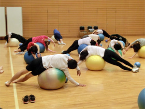 認定講習会はいつもわくわくします。初めてお会いする方が多いからです。また、2時間しかないので、グループ指導における内容をどのようにまとめて、伝えていくのか、毎回考えます。これが楽しい!ボールの特性がどれほど面白く有効なエクササイズなのかを実感してもらうために張り切りました!