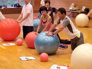 Gボール認定講習会はグループ・パーソナル・スポーツの3つの指導方法を学びます。ボールがどのように活用できるのか、現場ですぐに役立つものばかり!長時間のセミナーですが、3分野を3人の講師で行うので、きっと目まぐるしく時間は過ぎたと想像します。私はグループ指導の担当で一番手でした。皆さんとても元気で身体いっぱいボールに転がりました。